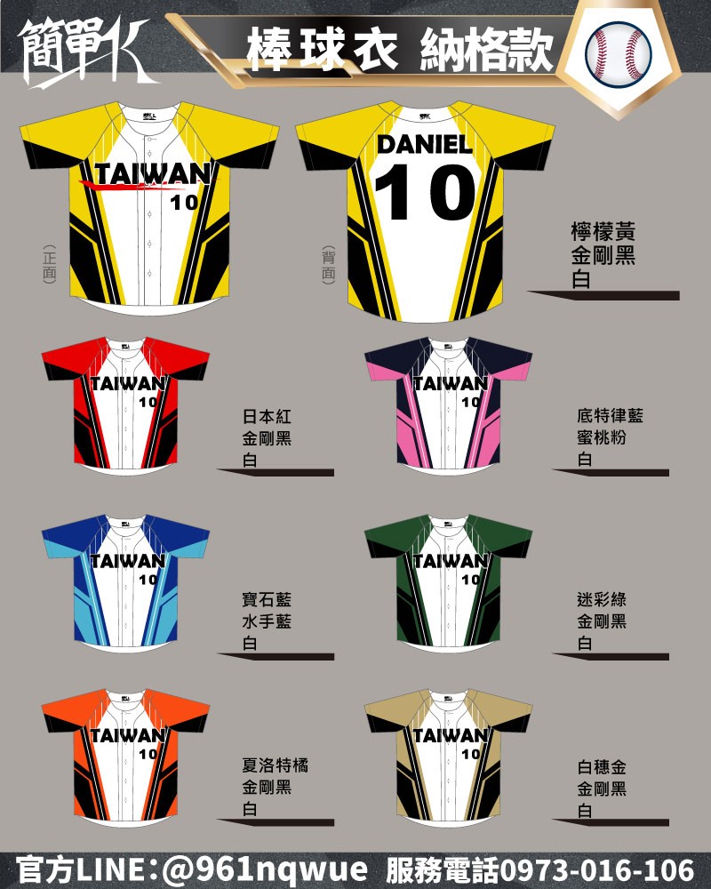 簡單K 棒球衣 熱昇華系列 百款可選 送大背號+前胸隊名+左胸小號